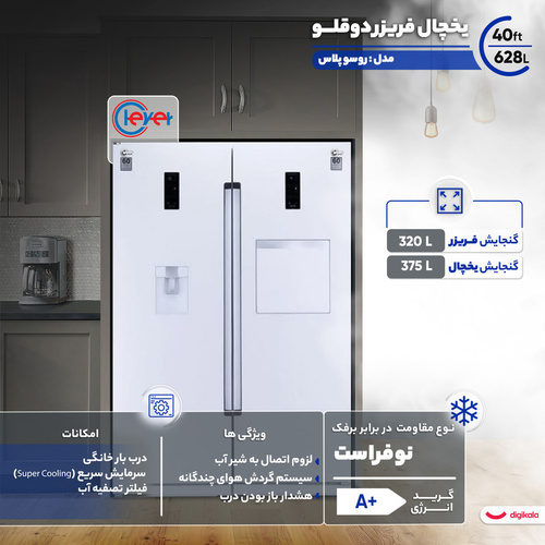 یخچال فریزر دوقلو 40 فوت کلور مدل روسو پلاس، یک شاهکار مهندسی در حوزه لوازم خانگی بزرگ است که نه تنها پاسخگوی نیازهای اساسی خانوادههای پرجمعیت است، بلکه با بهرهگیری از تکنولوژیهای نوین، استانداردی جدید برای حفظ تازگی مواد غذایی و مدیریت هوشمند انرژی تعریف میکند. این مدل با طراحی «ساید بای ساید» (Side-by-Side) مدرن و ابعاد 40 فوت، به عنوان یک نقطه کانونی زیبا و کاربردی در آشپزخانههای مدرن و کلاسیک میدرخشد.