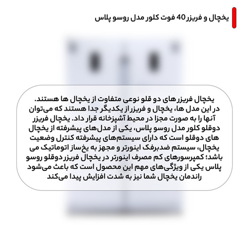 یخچال فریزر دوقلو 40 فوت کلور مدل روسو پلاس، با ترکیبی متعادل از **ظرفیت فوقالعاده، طراحی داخلی منعطف، تکنولوژی بدون برفک و گردش هوای چندگانه، مصرف انرژی بهینه و امکانات هوشمند**، یک سرمایهگذاری بلندمدت و ارزشمند برای خانه شماست. این محصول نمادی از **اعتبار برند، نوآوری و توجه به جزئیات** است و زندگی روزمره را با حفظ بهتر مواد غذایی و کاهش هزینههای جانبی، سادهتر و مطمئنتر میسازد.